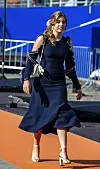 En marineblå kreation med hvid flæsekant af det eksklusive mærke Oscar De La Renta.