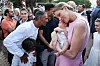 Charlene, der simpelthen strålede, tog sig endda tid til at tage en lille baby i sine arme og sludre lidt med forældrene.