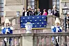 Længe inden Frederik og Mary gik i land, stod de klar på balkonen på Kungliga Slottet med hver sit Dannebrog i hænderne.