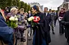 Her havde mange af de fremmødte taget blomster med til dronningen, der smilende tog imod - men til sidst åbenbart tog favnen for fuld.