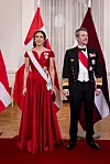 Dronning Mary simpelthen strålede i en smuk rød kjole, da hun og Frederik onsdag var æresgæster ved en gallamiddag på slottet i Riga forbindelse med deres statsbesøg i Letland.